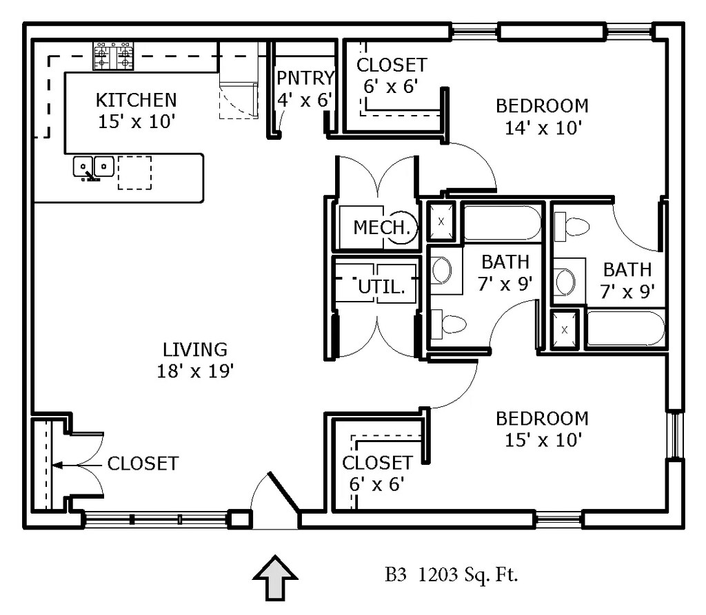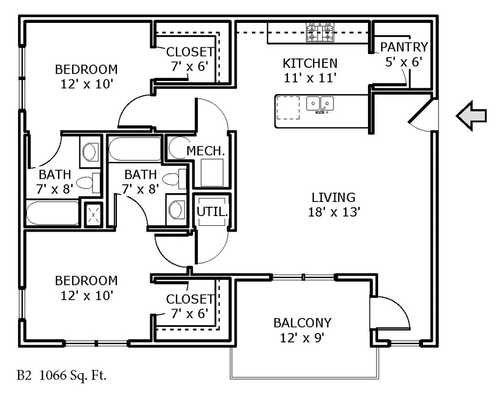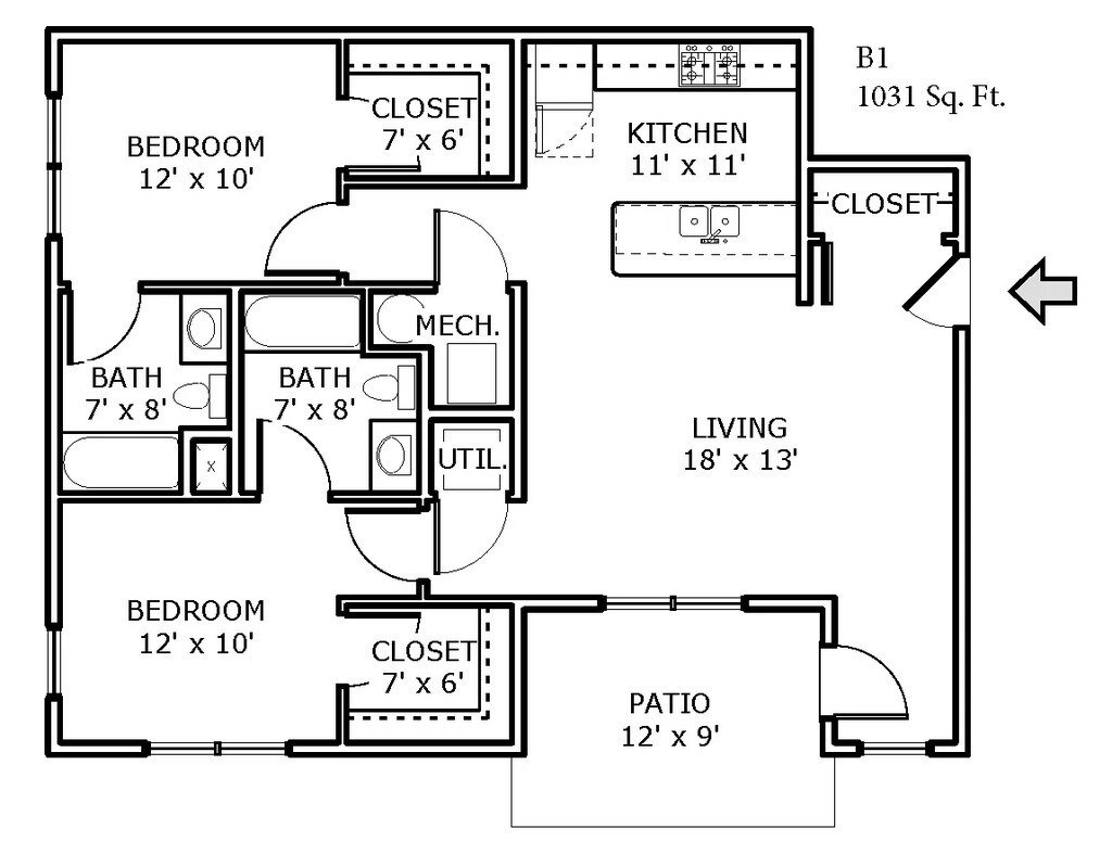 Apartment Model: B1Call For Rates2 Bedroom, 2 Bath, 1031 sq ftUnavailableB1 - Floorplan 1 Floorplan B3