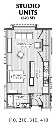 Studio, 1 Bath, 620 sq ftAvailability Details