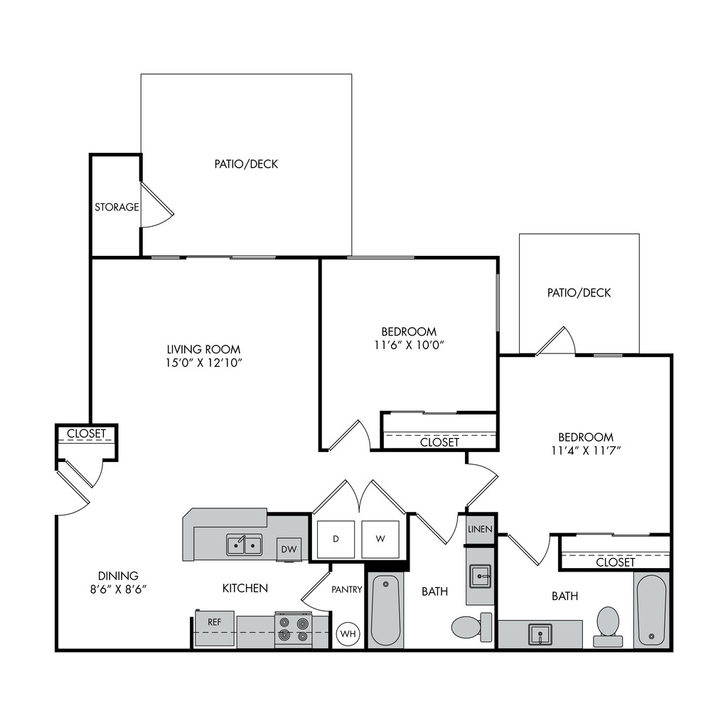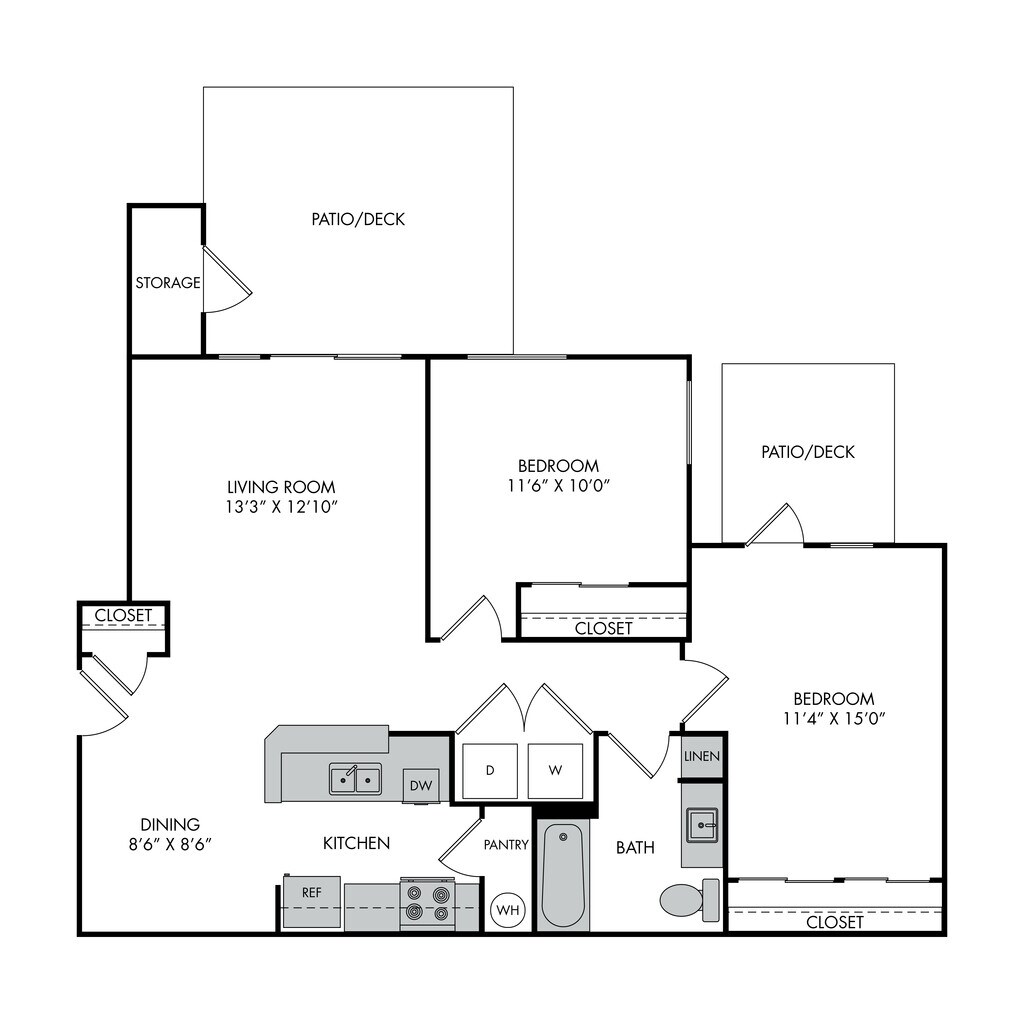 2 Beds, 1 Bath, 1051 sq ftAvailable NowModel Gallery