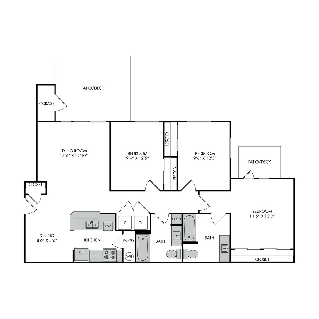 Apartment Model: Two Bed, One BathFrom $1,7952 Bedroom, 1 Bath, 1051 sq ftAvailable NowFloorplansPhotos![]()