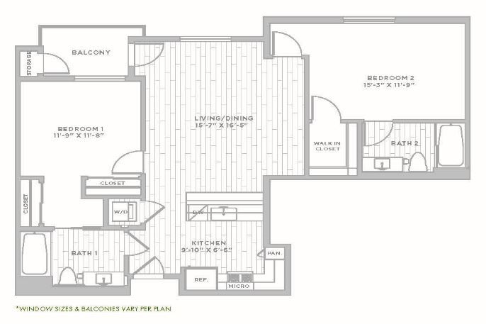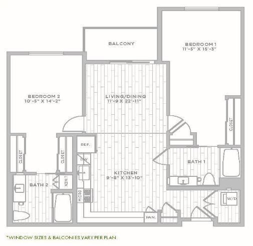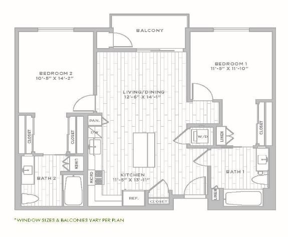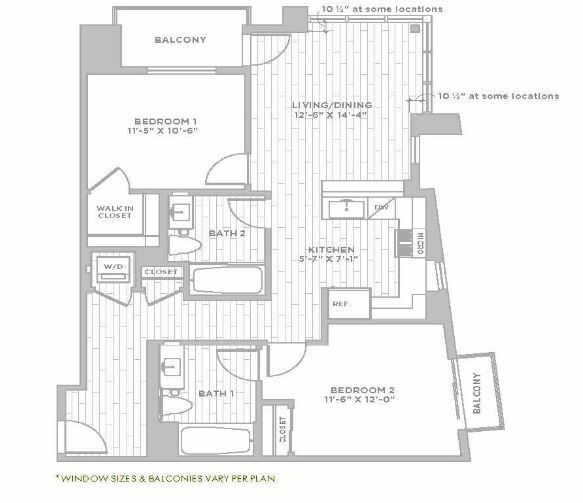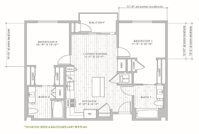 2 Beds, 2 Baths, 1183 sq ftLargest 2 BedroomThis is the largest 2 Bedroom at this PropertyModel Gallery
