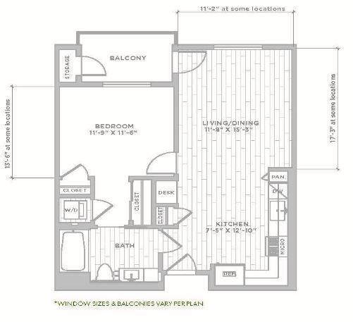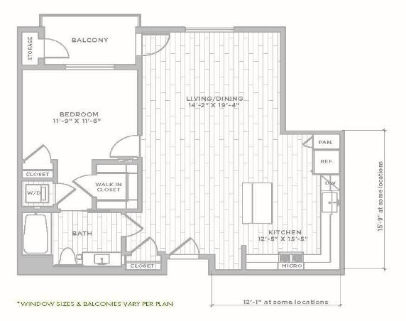 A6 - Floorplan 1 Apartment Unit: 715Apartment Model: A61 Bedroom, 1 Bath, 963 sq ftAvailable NowFloorplan A1