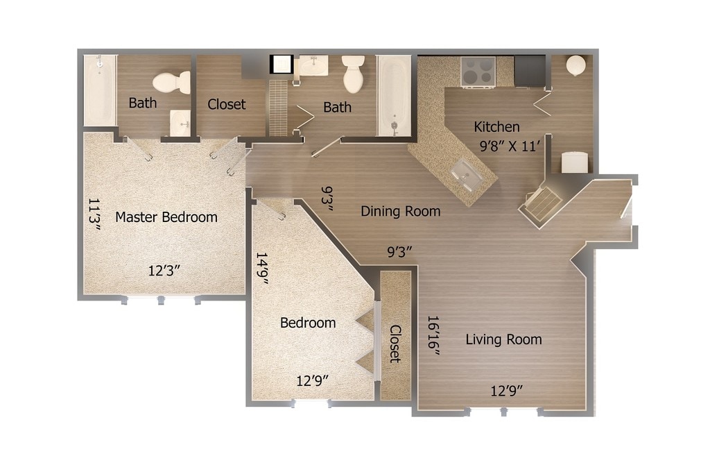 3 Beds, 2 Baths, 1174 sq ftAvailable NowModel Gallery