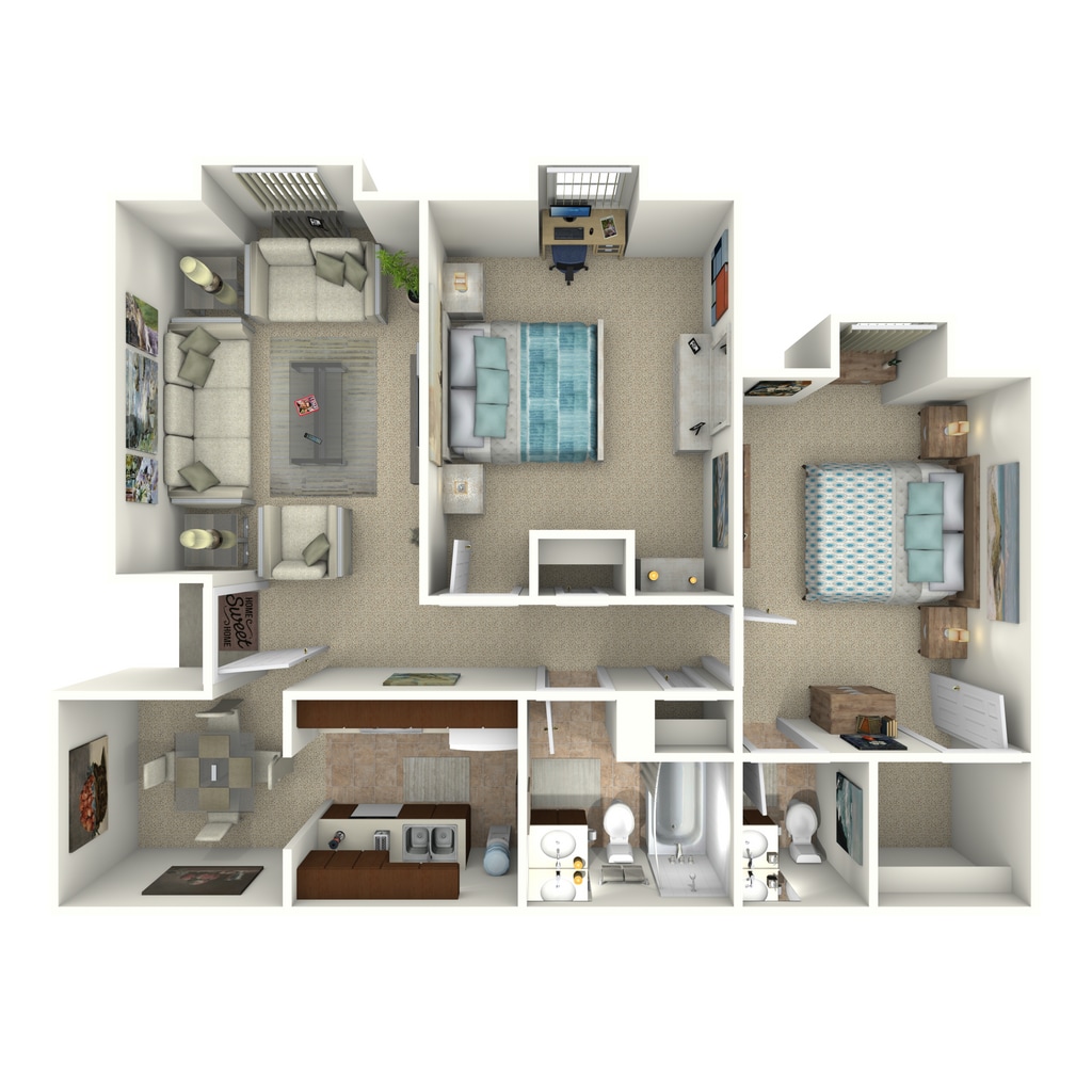 2 Beds, 1.5 Baths, 874 sq ftModel Gallery