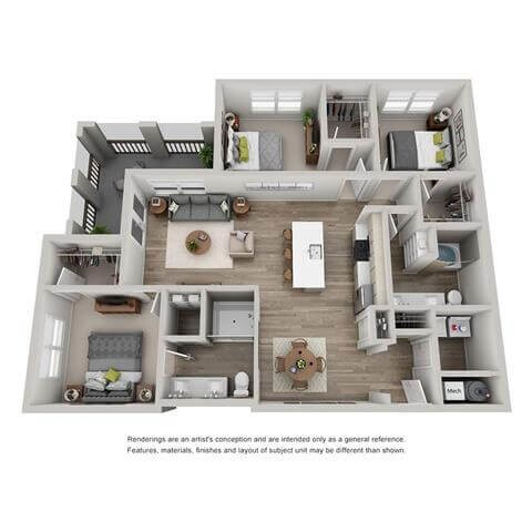 3 Beds, 2 Baths, 1353 sq ftAvailable NowModel Gallery