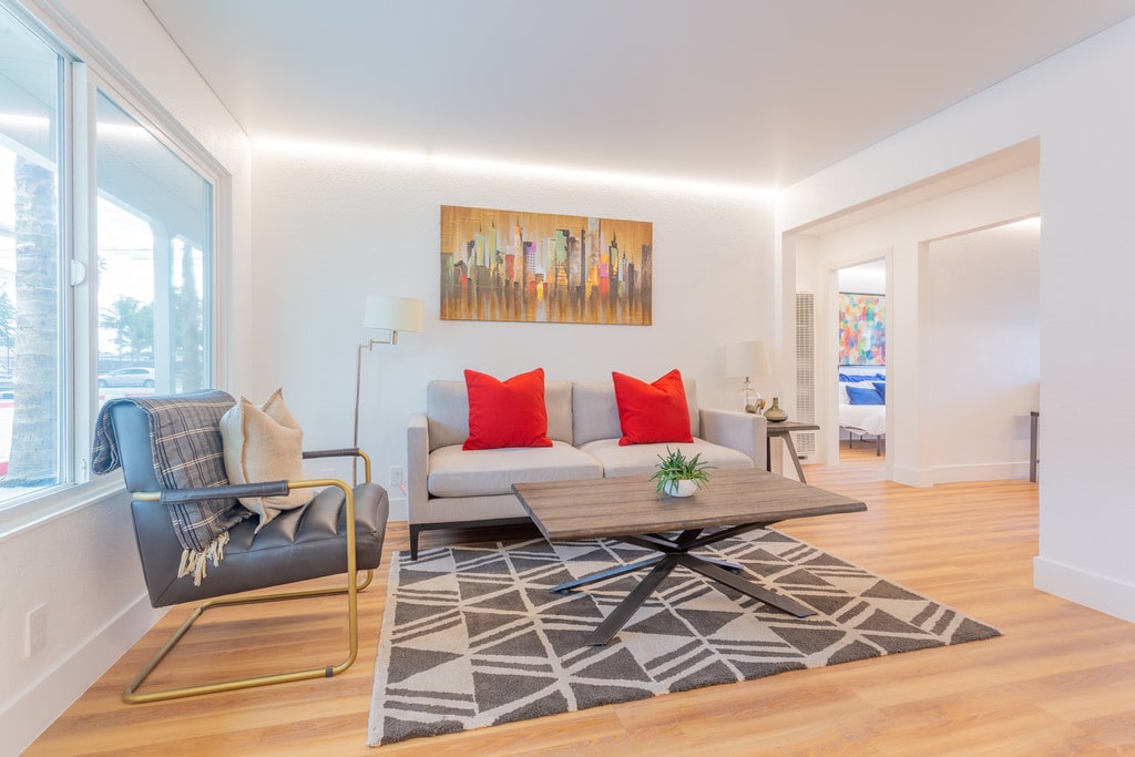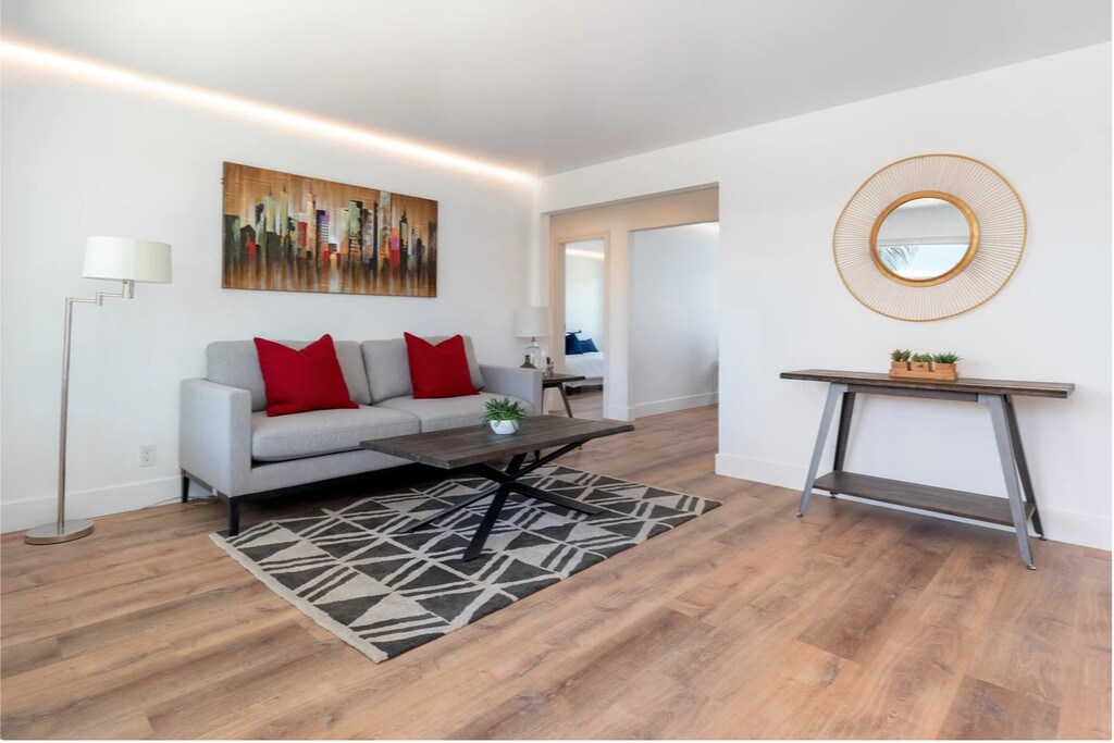 We welcome pets for zero fees or deposits!! Remodeled to perfection! -In-Home Amenities- Fully Renovated Inside and Out Hardwood Style Floors New Modern Appliances New Cabinetry Home Automation w/ Low Voltage LED Lighting Free Commercial High-Speed Wifi Large New Dual Pane Windows Black Shades in Bedrooms Private Patio and garage included. -Community Amenities- Outdoor Community Kitchen Lounge and Picnic Area Pet Stations and Green Areas Onsite Laundry Facilities Assigned Carports Rents starting at $2,495 Contact Ana for a tour of your newly renovated home. * (on select units) **Equal Housing Opportunity**