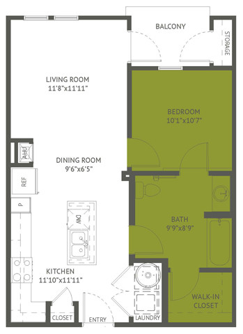 Apartment Model: The Balcones$9871 Bedroom, 1 Bath, 622 sq ftAvailable Now![]()