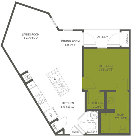 Apartment Model: The Concord$9361 Bedroom, 1 Bath, 570 sq ftAvailable Now![]()