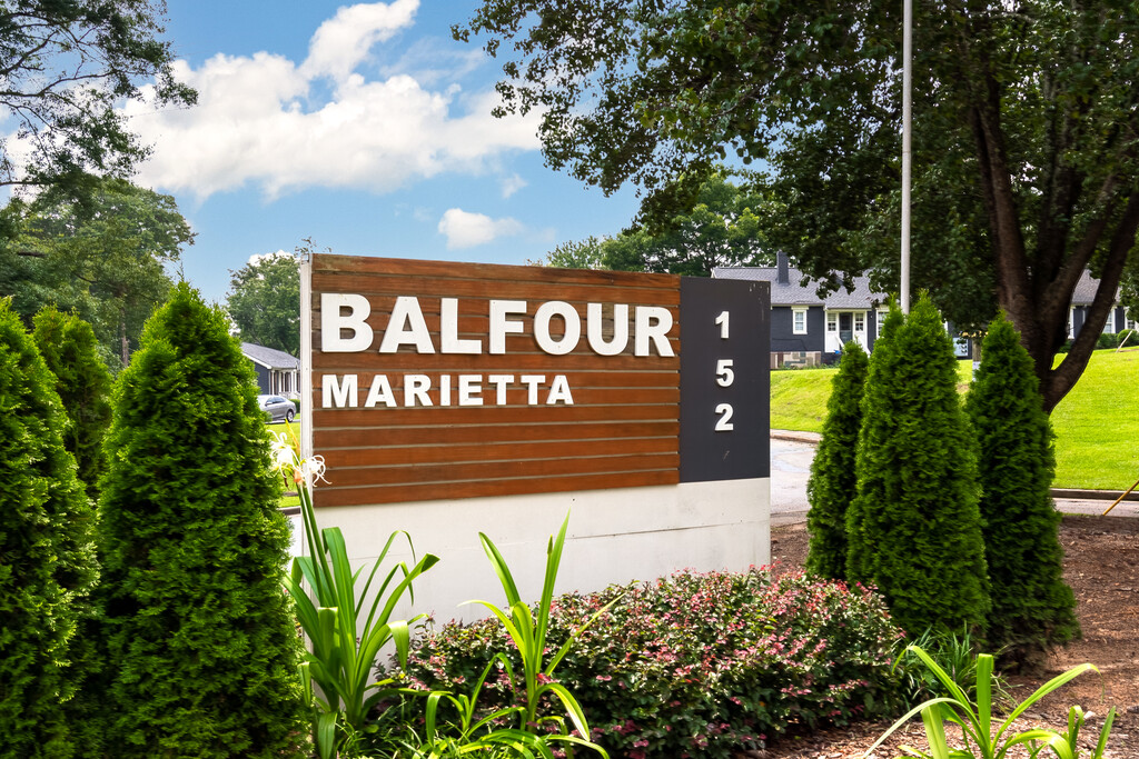 Balfour Marietta offers you an incredible living experience. We are situated in a secluded community that is conveniently located in the heart of Marietta, GA. Brand new property renovations feature modern building exteriors, new roofs and windows, and gorgeous doors/entry ways. Our renovated unit option features gorgeous brand new flooring throughout, stylish fixtures and hardware, and a state of the art kitchen fully equipped with new appliances, high end granite countertops, and soft close cabinetry.Here at Balfour Marietta you will be located within 10 minutes of Truist Park - home to the Atlanta Braves. You will also find that a variety of shopping venues and restaurants are all within walking distance from your home. We are also located on the MARTA bus line ensuring a convenient home that you will love.