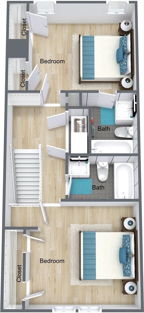 2 Bed 2.5 Bath Classic - Floorplan 2 2 Bedroom Townhome Renovated