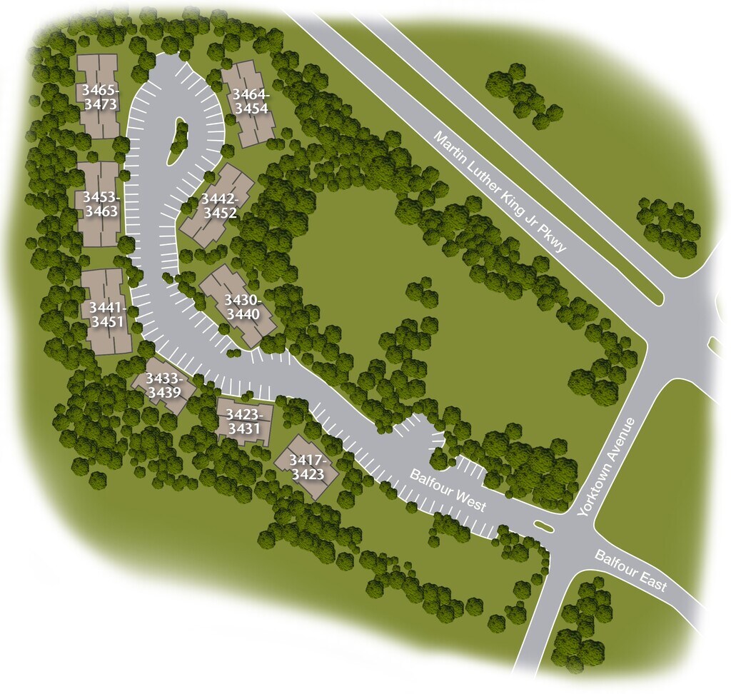 Balfour West is located at 3417 Balfour W near the Woodcroft area of Durham, NC