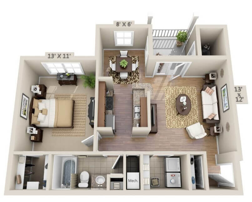 1 Bed, 1 Bath, 800 sq ftAvailable NowModel Gallery