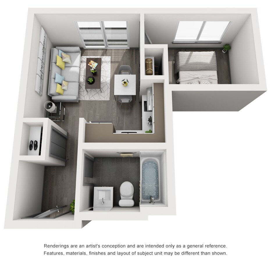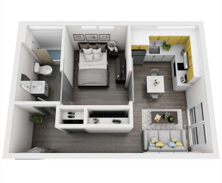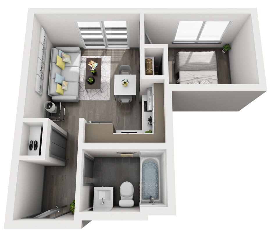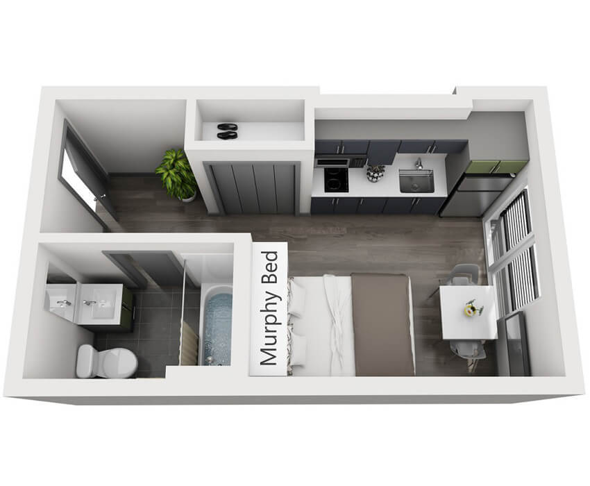 1 Bed, 1 Bath, 384 sq ftModel Gallery