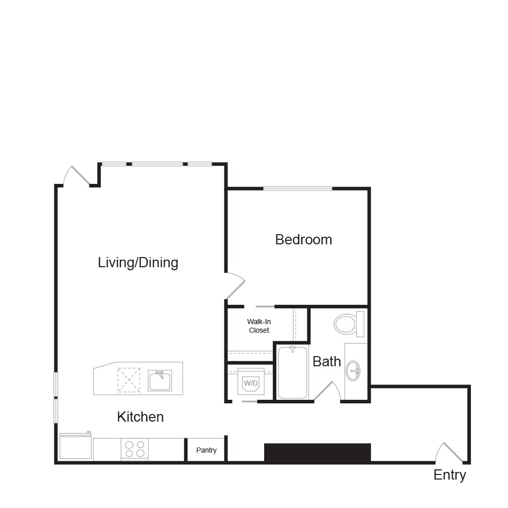 Apartment Model: Open One BedroomFrom $1,5861 Bedroom, 1 Bath, 517-567 sq ftAvailable NowFloor plans are artist's rendering. All dimensions are approximate. Actual product and specifications may vary in dimension or detail. Not all features are available in every rental home. Prices and availability are subject to change. Base rent is based on monthly frequency. Additional fees may apply, such as but not limited to package delivery, trash, water, amenities, etc. Deposits vary. Please see a representative for details.