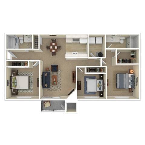 Two Bedroom Two Bath - Floorplan 11 3 Bedrooms