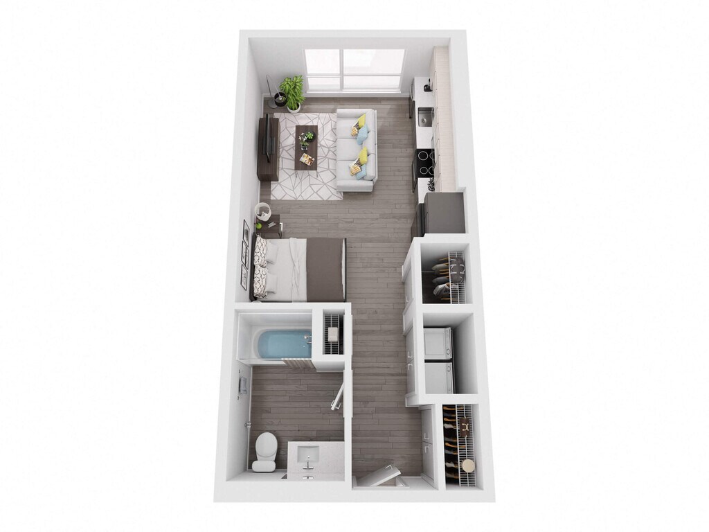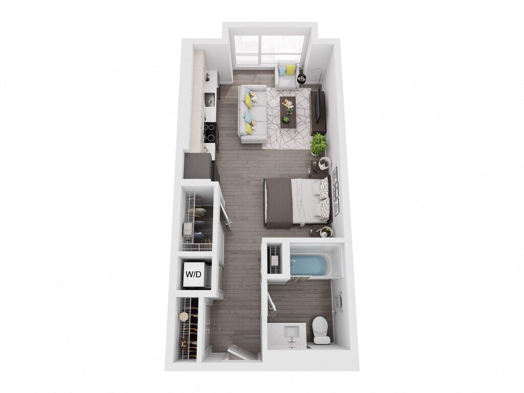 Apartment Model: S1.0From $1,734Studio, 1 Bath, 529 sq ftAvailable NowFloor plans are artist's rendering. All dimensions are approximate. Actual product and specifications may vary in dimension or detail. Not all features are available in every rental home. Prices and availability are subject to change. Base rent is based on monthly frequency. Additional fees may apply, such as but not limited to package delivery, trash, water, amenities, etc. Deposits vary. Please see a representative for details.