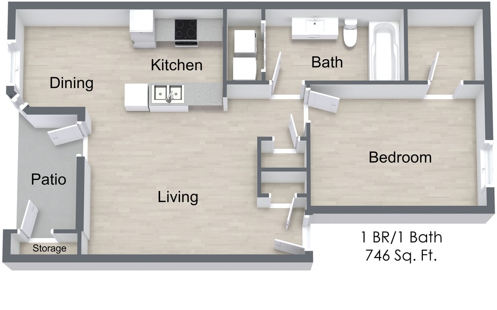 1 Bed, 1 Bath, 746 sq ftModel Gallery