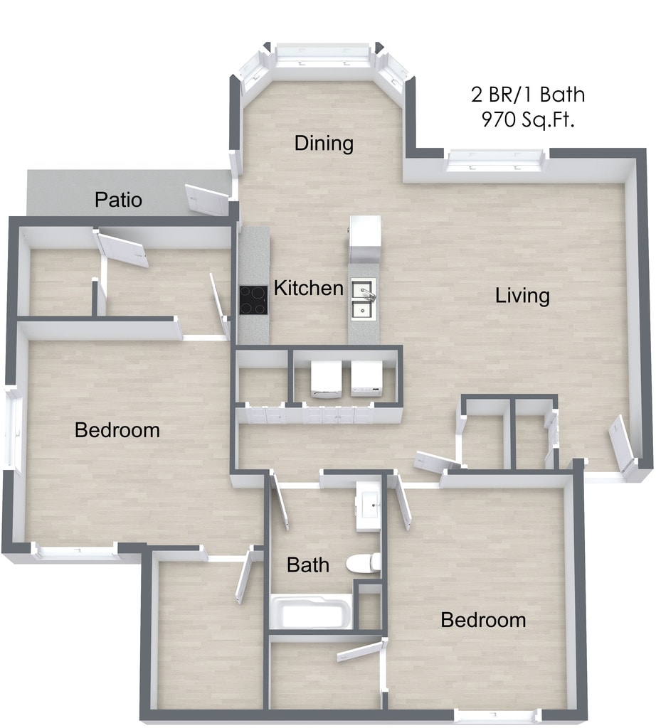 2 Beds, 1 Bath, 970 sq ftModel Gallery