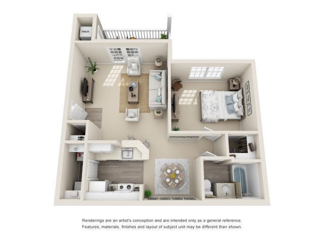 1 Bed, 1 Bath, 671 sq ftModel Gallery