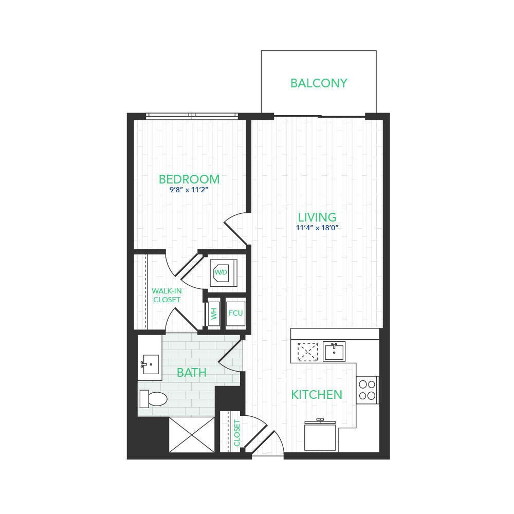 Studio, 1 Bath, 551 sq ftTotal Monthly PriceAvailable NowModel Gallery