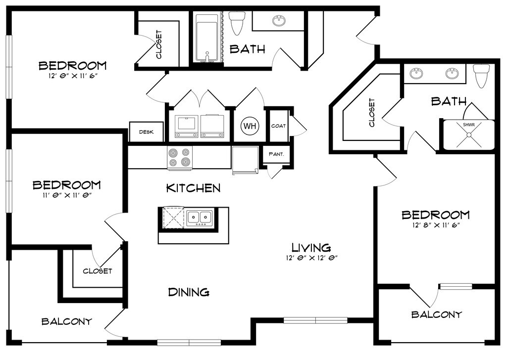 2 Beds, 2 Baths, 1194 sq ftAvailable NowModel Gallery