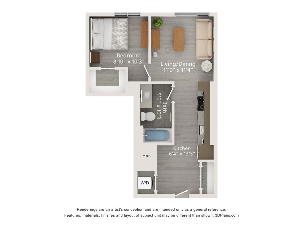 Apartment Model: A3From $2,2051 Bedroom, 1 Bath, 604 sq ftAvailable NowFloor plans are artist's rendering. All dimensions are approximate. Actual product and specifications may vary in dimension or detail. Not all features are available in every rental home. Please see a representative for details.