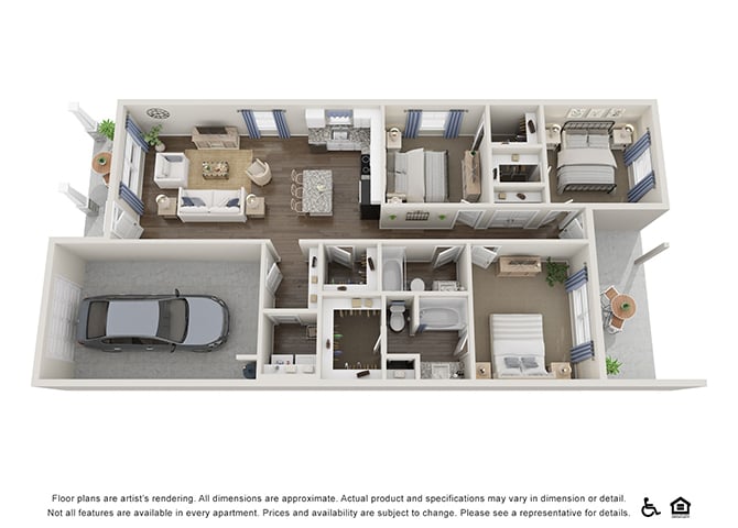 Apartment Model: JuniperFrom $2,2493 Bedroom, 2.5 Bath, 1611 sq ftAvailable NowFloor plans are artist's rendering. All dimensions are approximate. Actual product and specifications may vary in dimension or detail. Not all features are available in every rental home. Prices and availability are subject to change. Base rent is based on monthly frequency. Additional fees may apply, such as but not limited to package delivery, trash, water, amenities, etc. Deposits vary. Please see a representative for details.