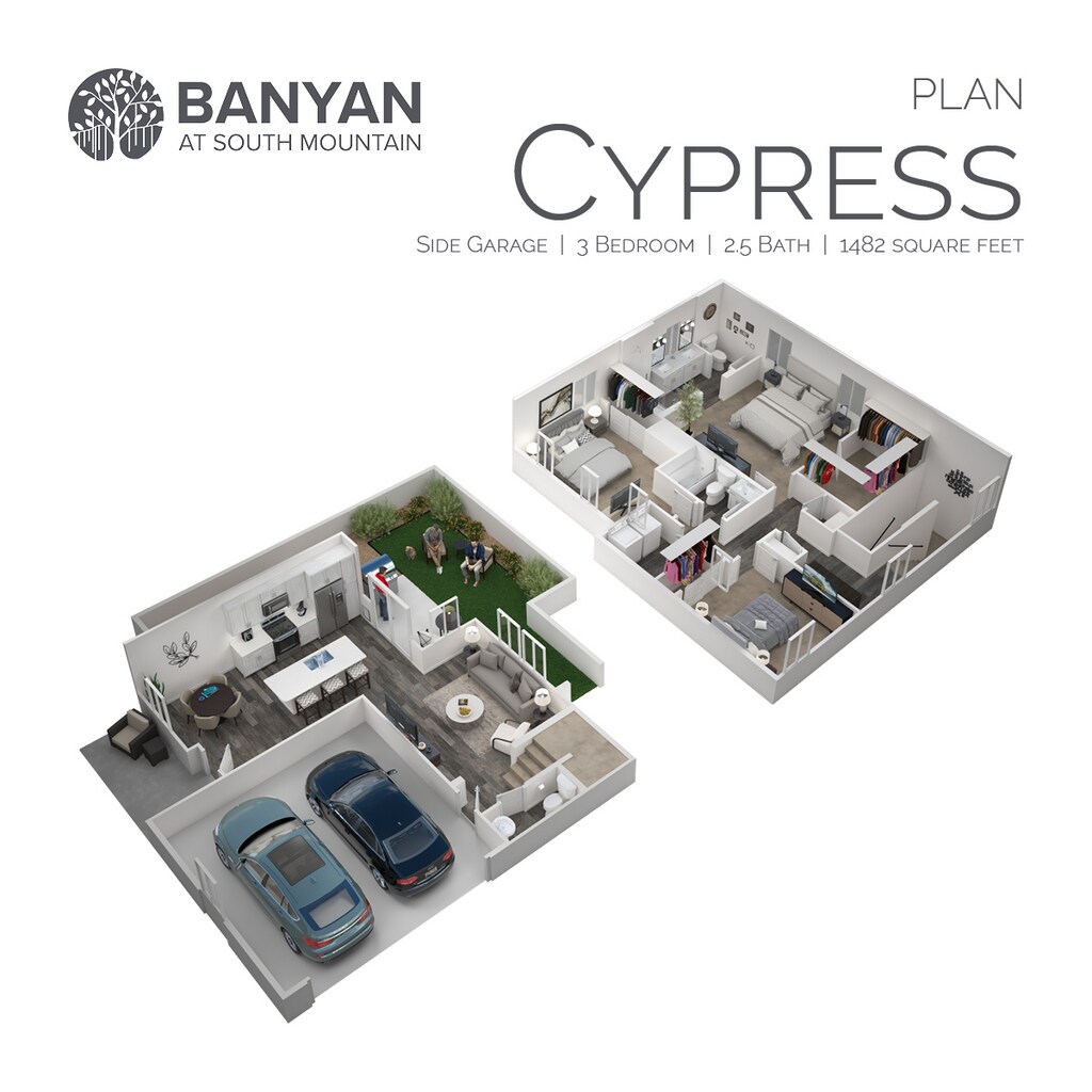 3 Beds, 2.5 Baths, 1482 sq ftAvailable NowLargest 3 BedroomThis is the largest 3 Bedroom at this PropertyModel Gallery