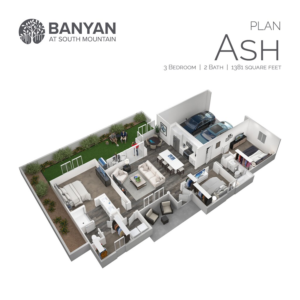 3 Beds, 2 Baths, 1381 sq ftModel Gallery