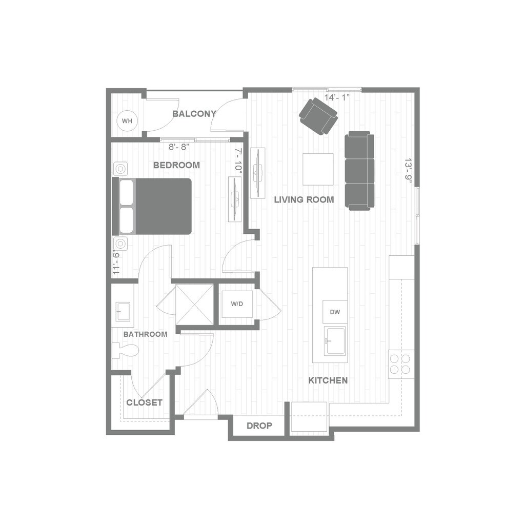 A1 - Floorplan 1 Apartment Unit: C214Apartment Model: A11 Bedroom, 1 Bath, 867 sq ftAvailable December 4, 2025Floorplan A7