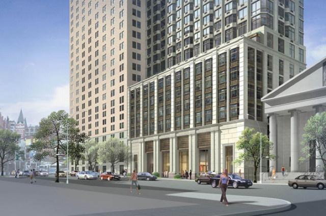 The impressive 58-story Barclay Tower is Glenwood Management's newest, most luxurious apartment building in Tribeca - if not the entire city. Top to bottom, every detail speaks of quality, from it's grand three-story Colonnade entrance, to it's sophisticated lobby featuring barrel-vaulted ceilings, Aquamarina marble floors bordered with hand-crafted mosaic stone, French chiseled limestone walls and cornices, plus tranquil seating areas of Japanese Tamo and Teak. Unparalleled amenities and service includes 24-hour attentive staff and concierge hotline.
