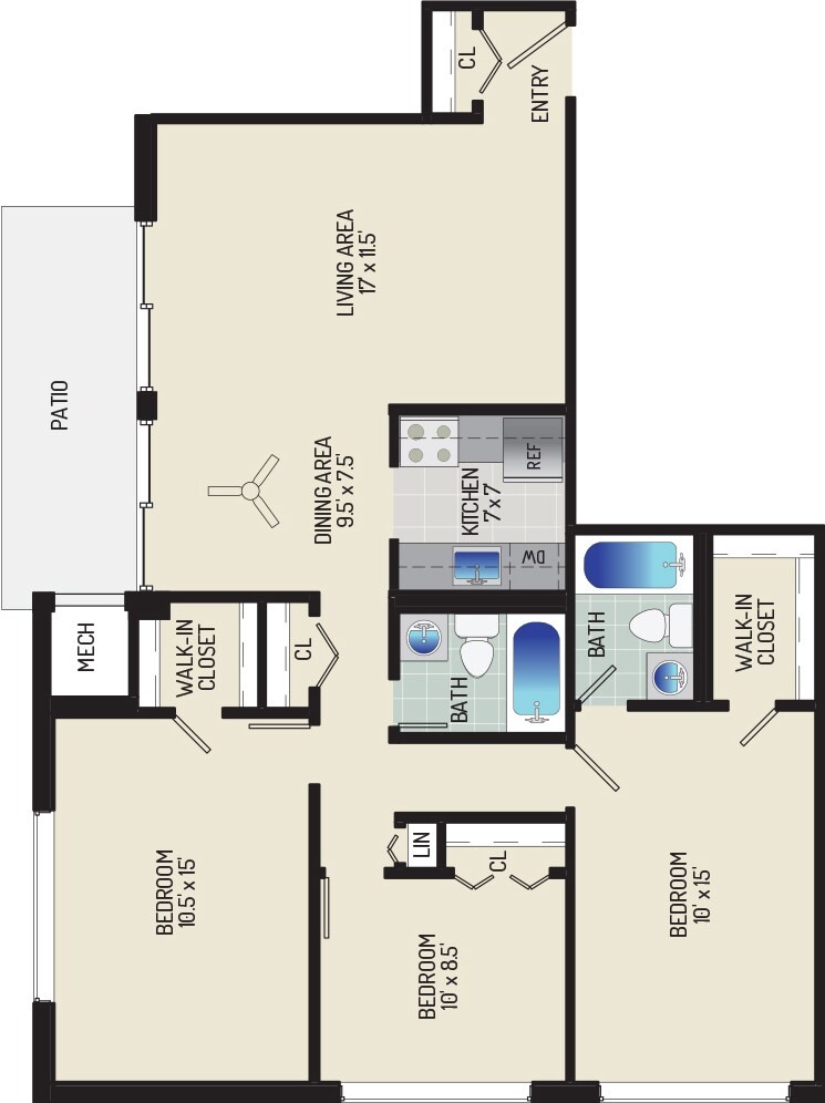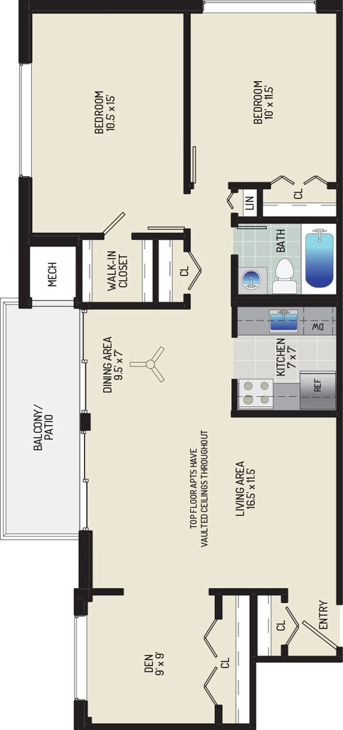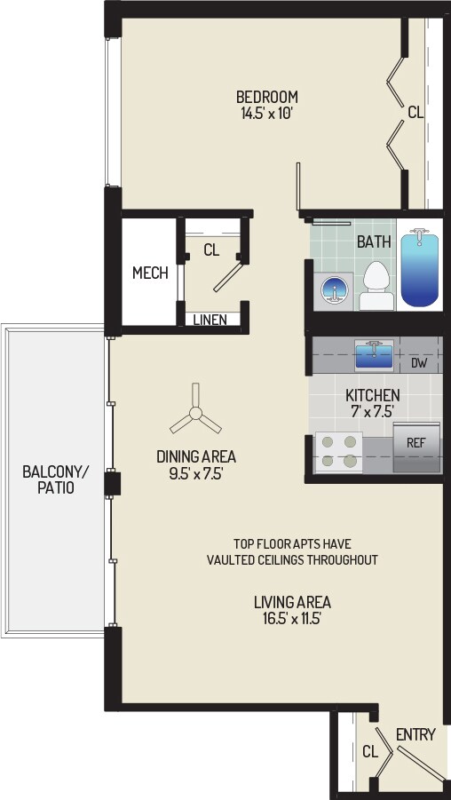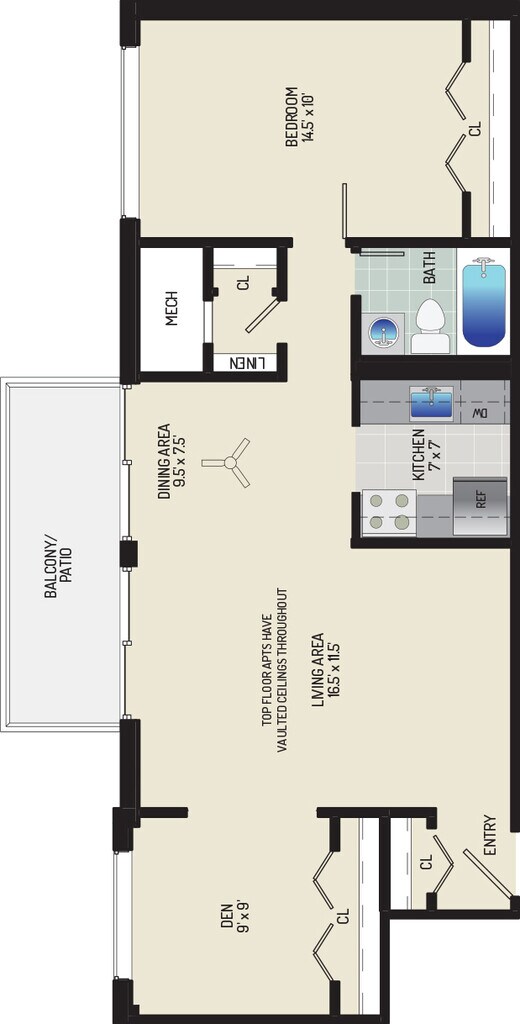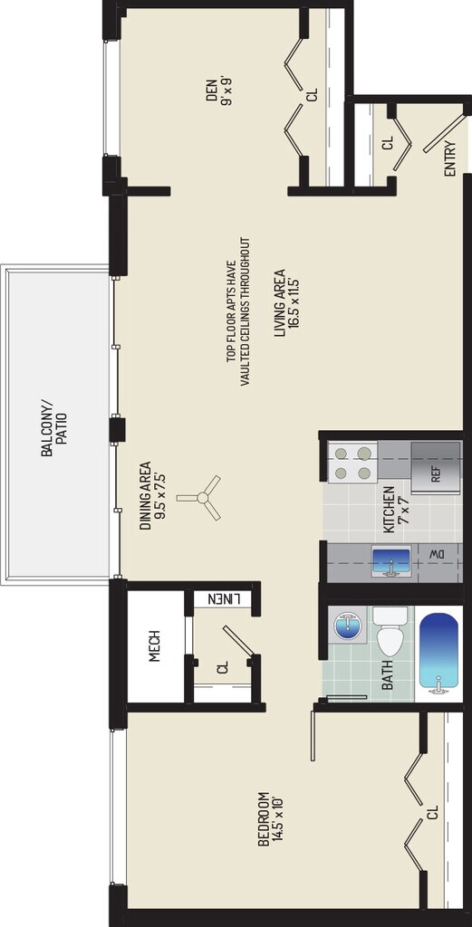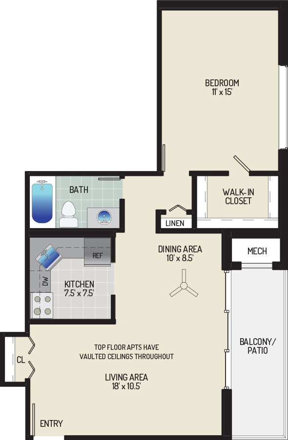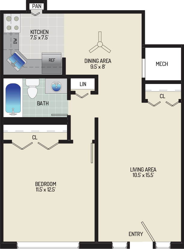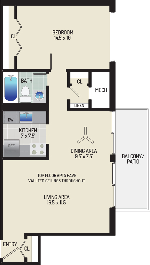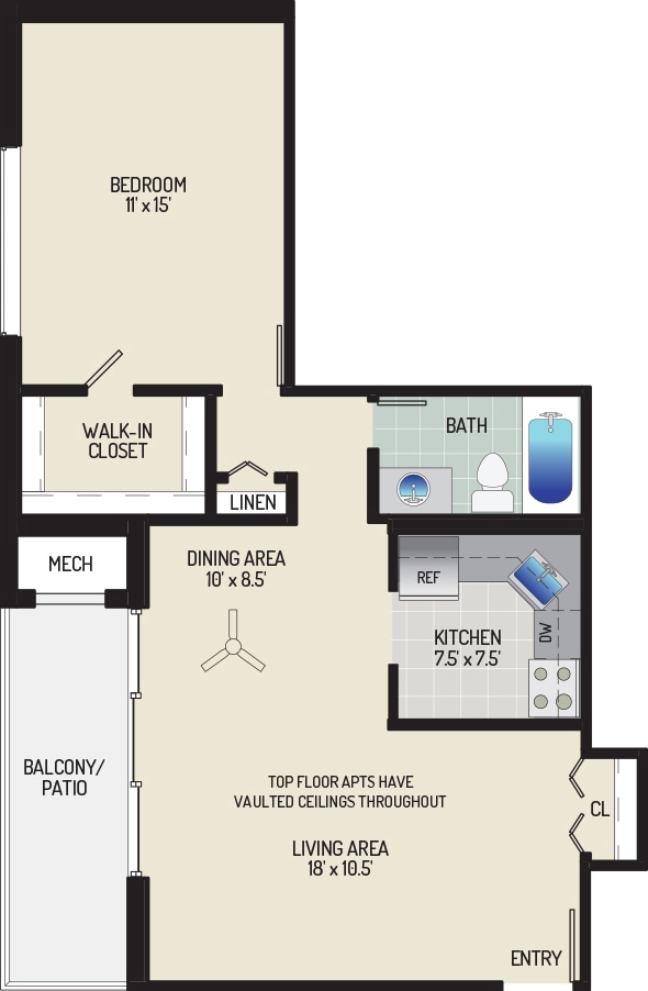 1 Bedroom + 1 Bath - Floorplan 15 ![]()
