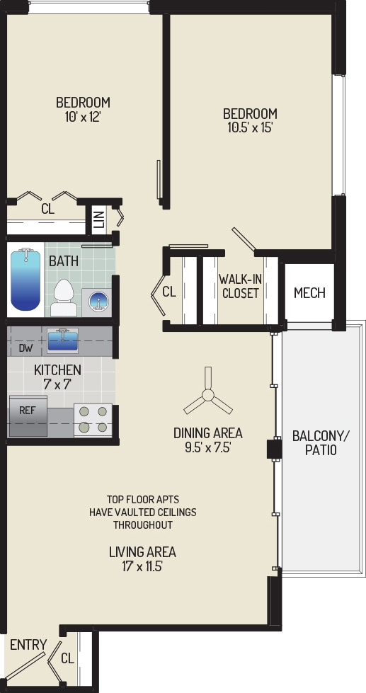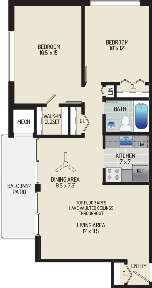 2 Bedrooms + 1 Bath - Floorplan 10 ![]()