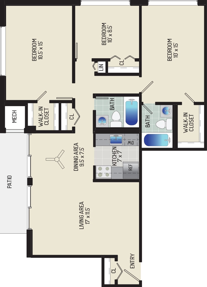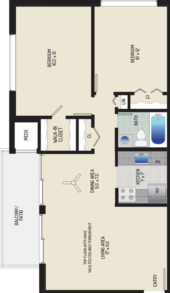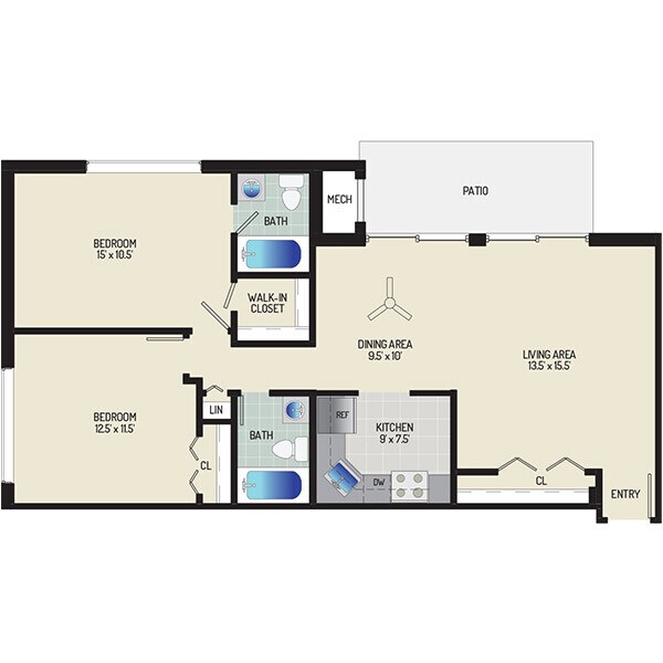 2 Bedrooms + 1 Bath - Floorplan 15 ![]()