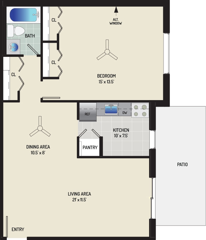 1 Bedroom + 1 Bath - Floorplan 8 ![]()