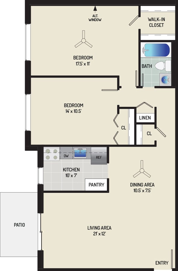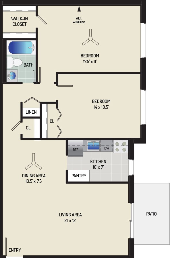 2 Bedrooms + 1 Bath - Floorplan 12 ![]()