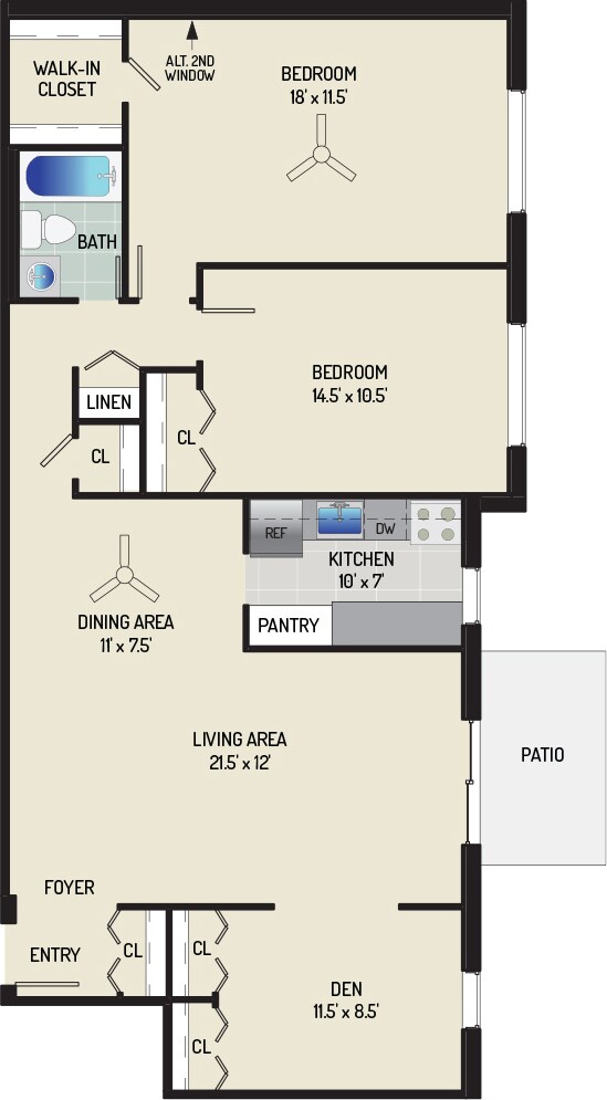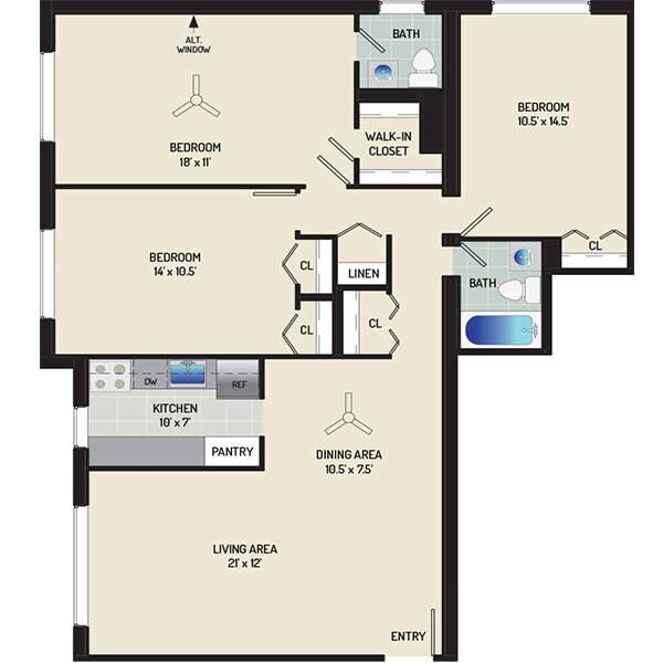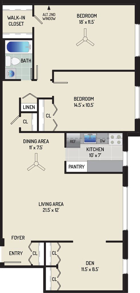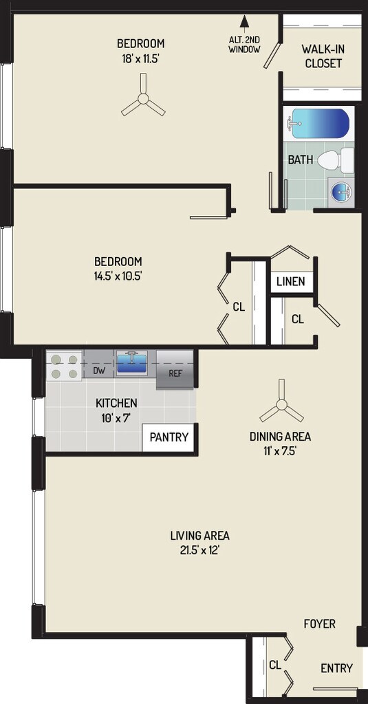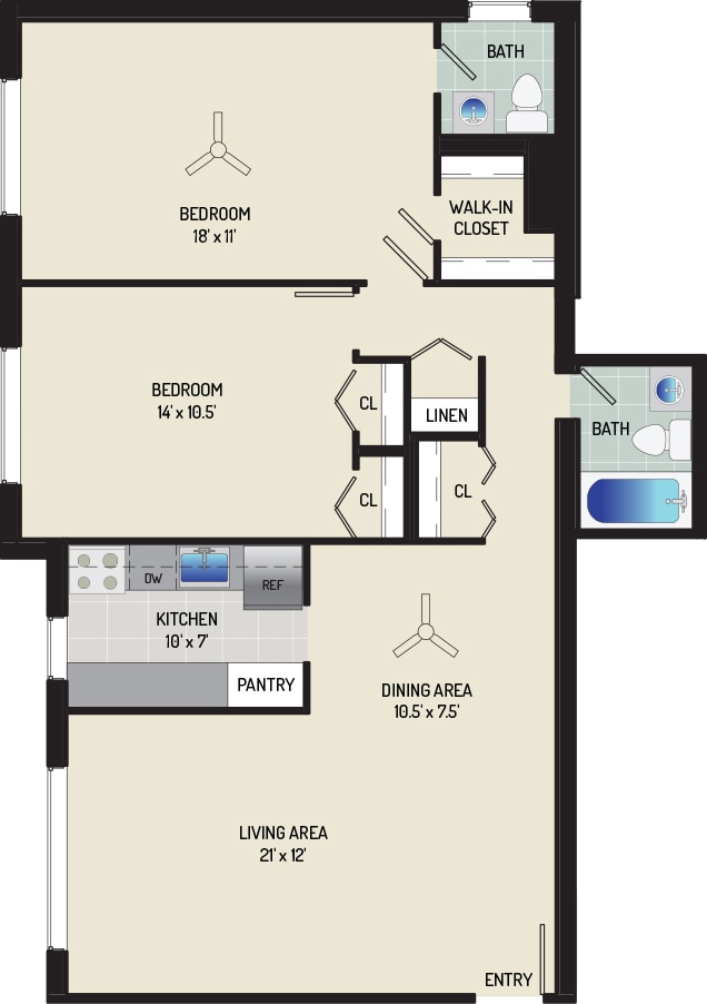2 Bedrooms + 1 Bath - Floorplan 11 ![]()