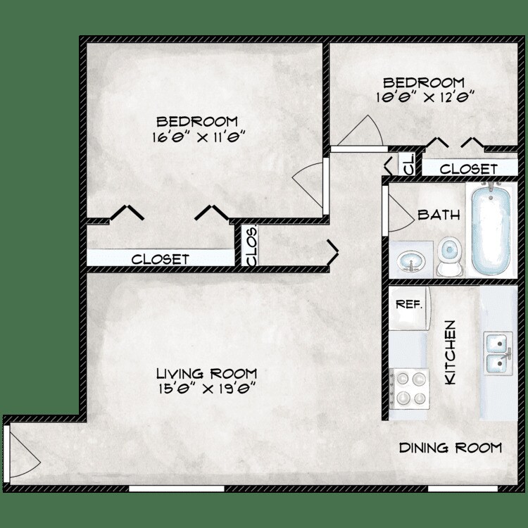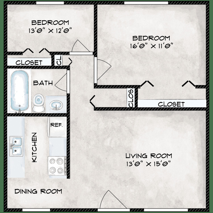 2 Beds, 1 Bath, 1120 sq ftAvailable NowModel Gallery