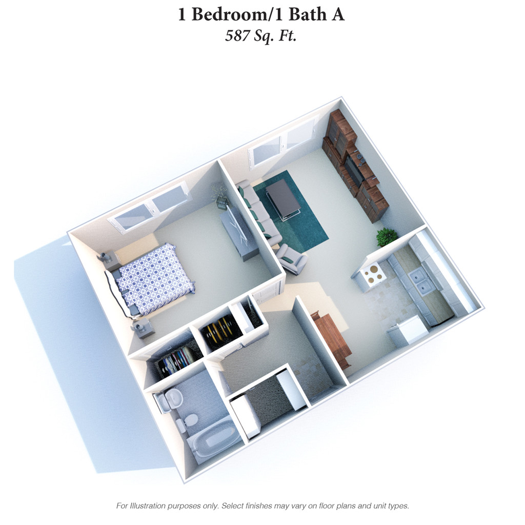 1 Bed, 1 Bath, 587 sq ftModel Gallery