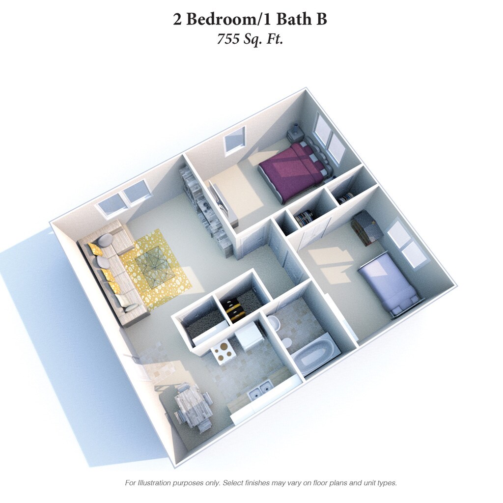 Apartment Model: 2 Bedroom 1 Bath BFrom $1,0102 Bedroom, 1 Bath, 755 sq ftAvailable December 18, 2025![]()