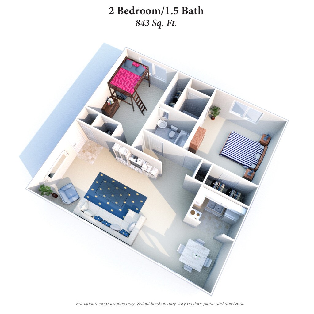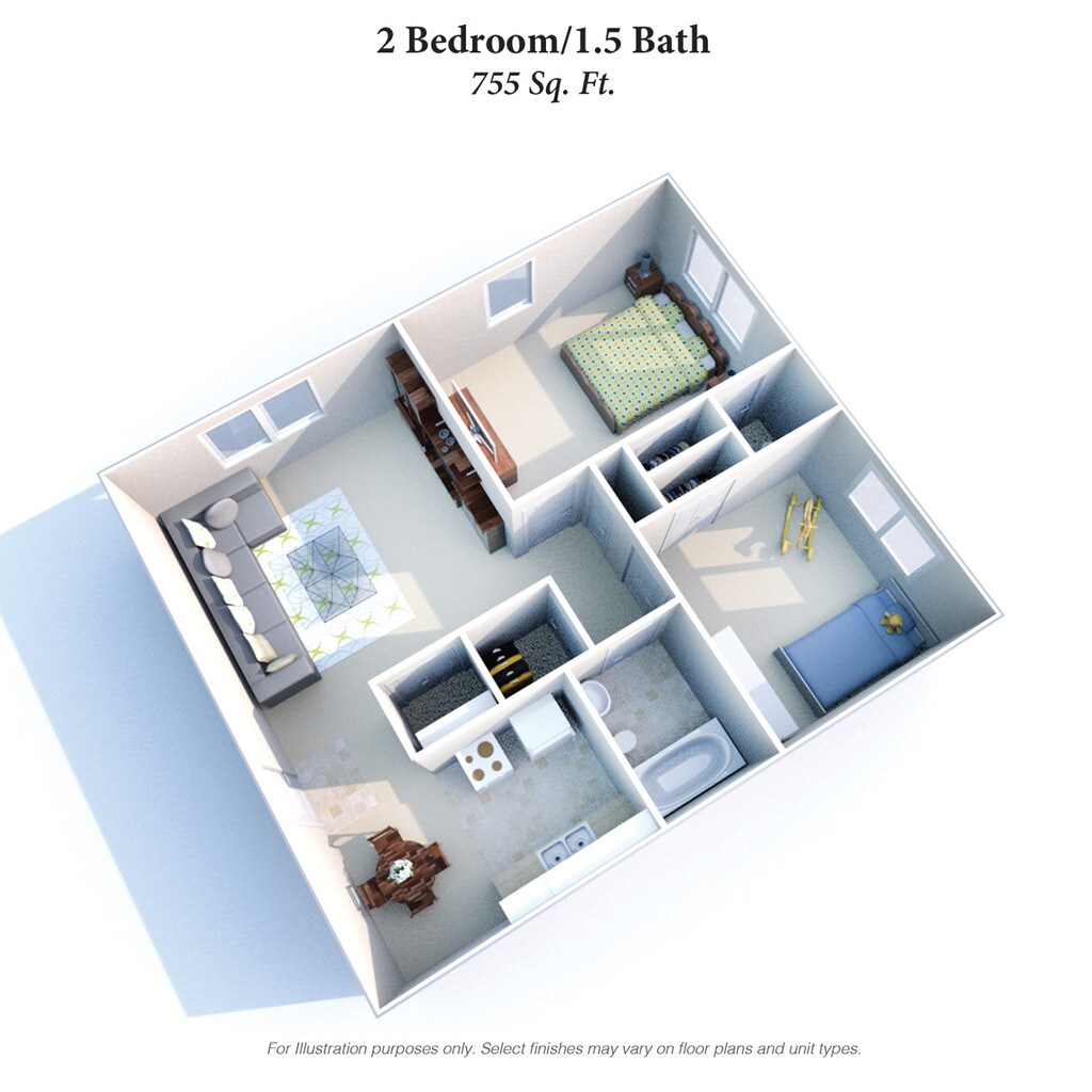 2 Beds, 1 Bath, 755 sq ftAvailable Dec 18Model Gallery