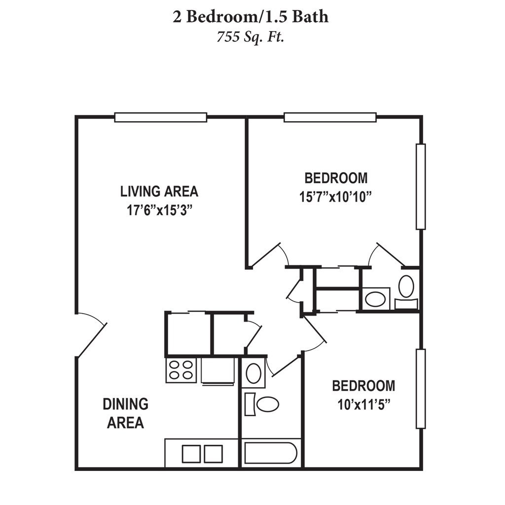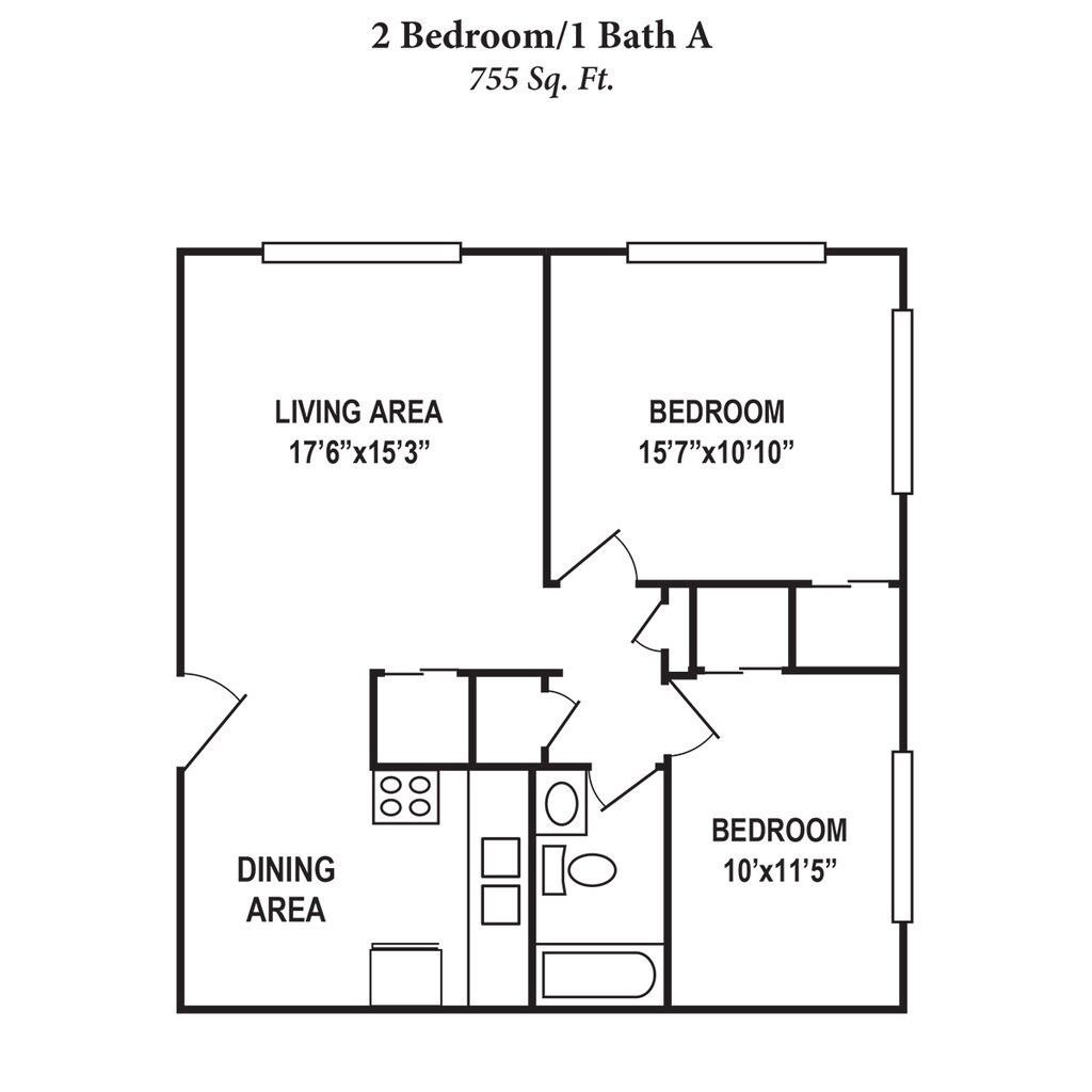 1 Bedroom 1 Bath A - Floorplan 2 2 Bedrooms