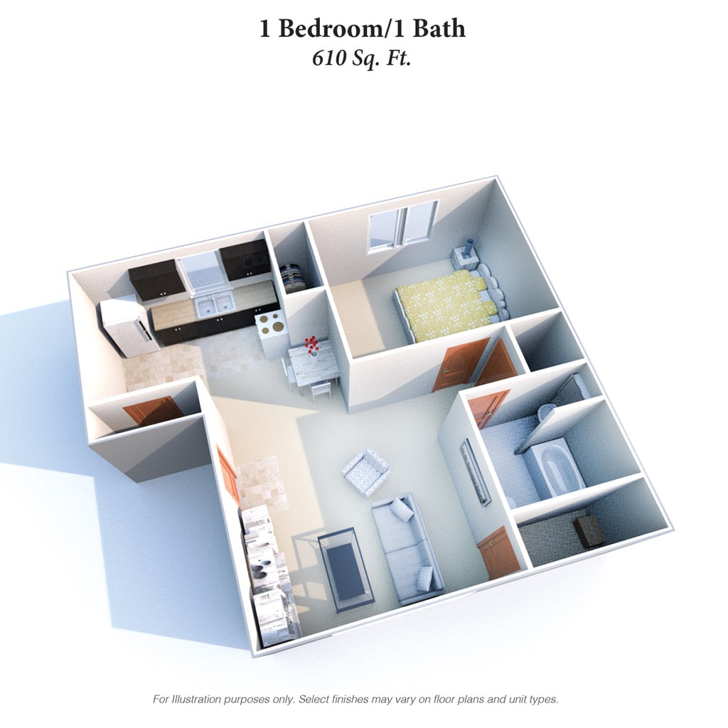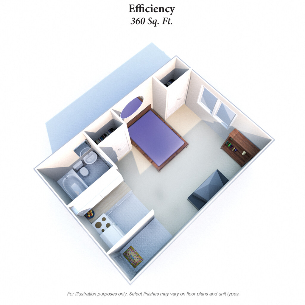 Studio, 1 Bath, 360 sq ftModel Gallery