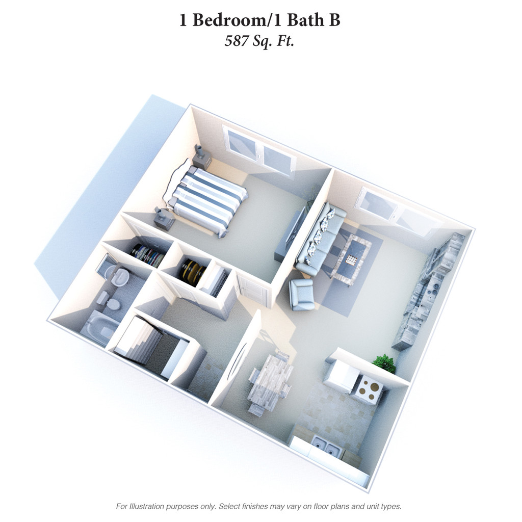 Apartment Model: 1 Bedroom 1 Bath BFrom $8651 Bedroom, 1 Bath, 587 sq ftAvailable December 22, 2025![]()