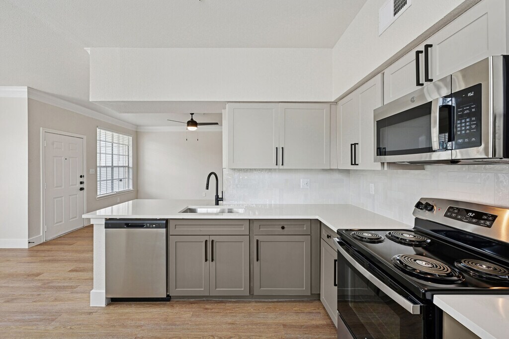 Escape the hustle and bustle of the Houston Metro at Barnett Apartments and unwind with a variety of amenities and apartment features. Our luxury apartment community is located near Houston’s Energy Corridor and features homes with one or two bedrooms. Residents enjoy the best amenities, location and friendly staff you’ll find. Our spacious apartments feature floor plans with one or two bedrooms. Enjoy private patios or balconies with gorgeous views, vaulted ceilings and so much more. Our homes have been recently renovated and feature perks like oversized tubs, standalone dining areas, wood-style flooring, full-size washers and dryers, sleek hardware and walk-in closets. Optional enhancements include tile backsplashes, stainless steel appliances, quartz countertops and more. From a 24-hour fitness center to a sparkling swimming pool and grilling stations, Barnett Apartments has it all. Residents of our luxury apartments in Houston also enjoy a lounge with coffee bar, tennis courts, business center, parcel lockers, reserved carports and community events. Our staff and maintenance team are your ally in maximizing your time at our West Houston apartments. Our location makes life easy, with nearby highways like I-10 and Beltway 8. We’re in close proximity to parks and outdoor attractions like Bill Archer Park, Addicks Reservoir, Terry Hershey Park Hike and Bike Trail, Lakeside Country Club, Freedom Park, Exploration Park and Bear Creek Pioneers Park. As for dining, top-rated restaurants like Fadi's Mediterranean Grill and Brenner's Steak House are just around the corner. Your everyday needs are right around the corner. We allow up to two pets per apartment, welcoming most breeds, and we have a dog park with an agility course. Schedule a tour of Barnett Apartments today!