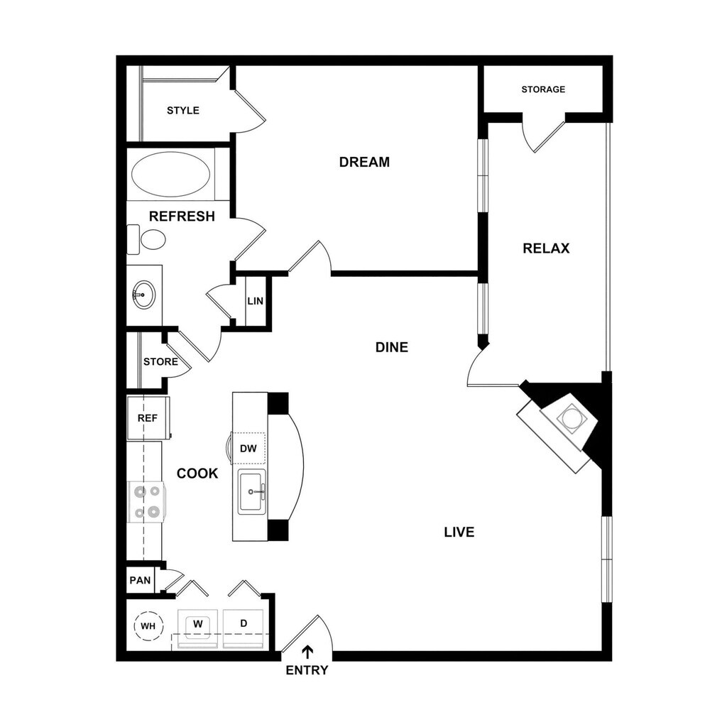 1 Bed, 1 Bath, 785 sq ftAvailable NowLargest 1 BedroomThis is the largest 1 Bedroom at this PropertyModel Gallery