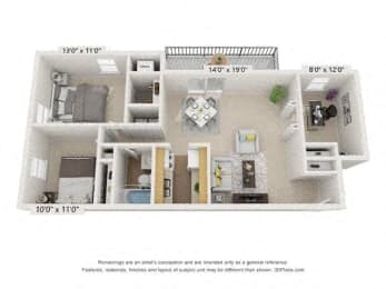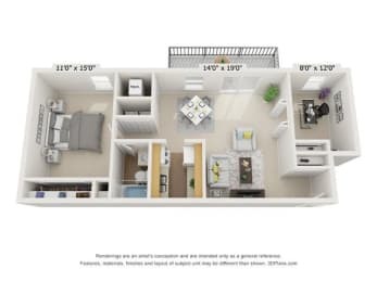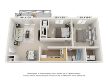 One Bedroom Den - Floorplan 1 Apartment Unit: 545-14Apartment Model: One Bedroom Den$1,2551 Bedroom, 1 Bath, 870 sq ftAvailable January 6, 20262 Bedrooms