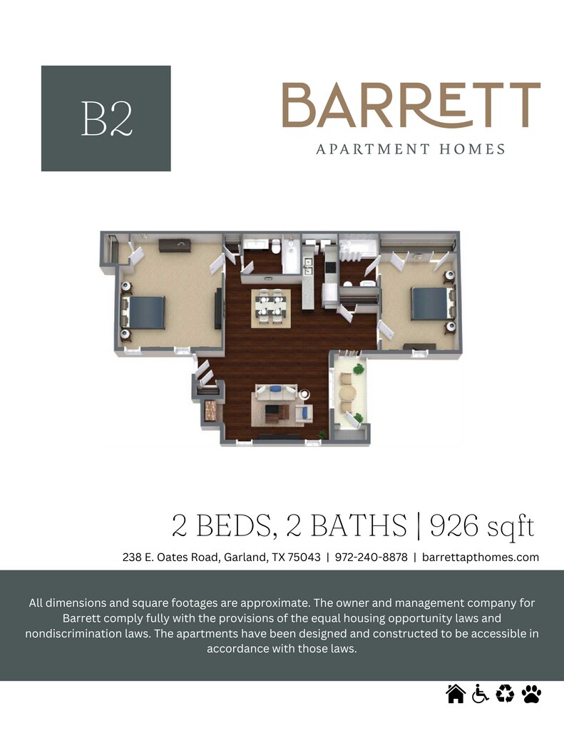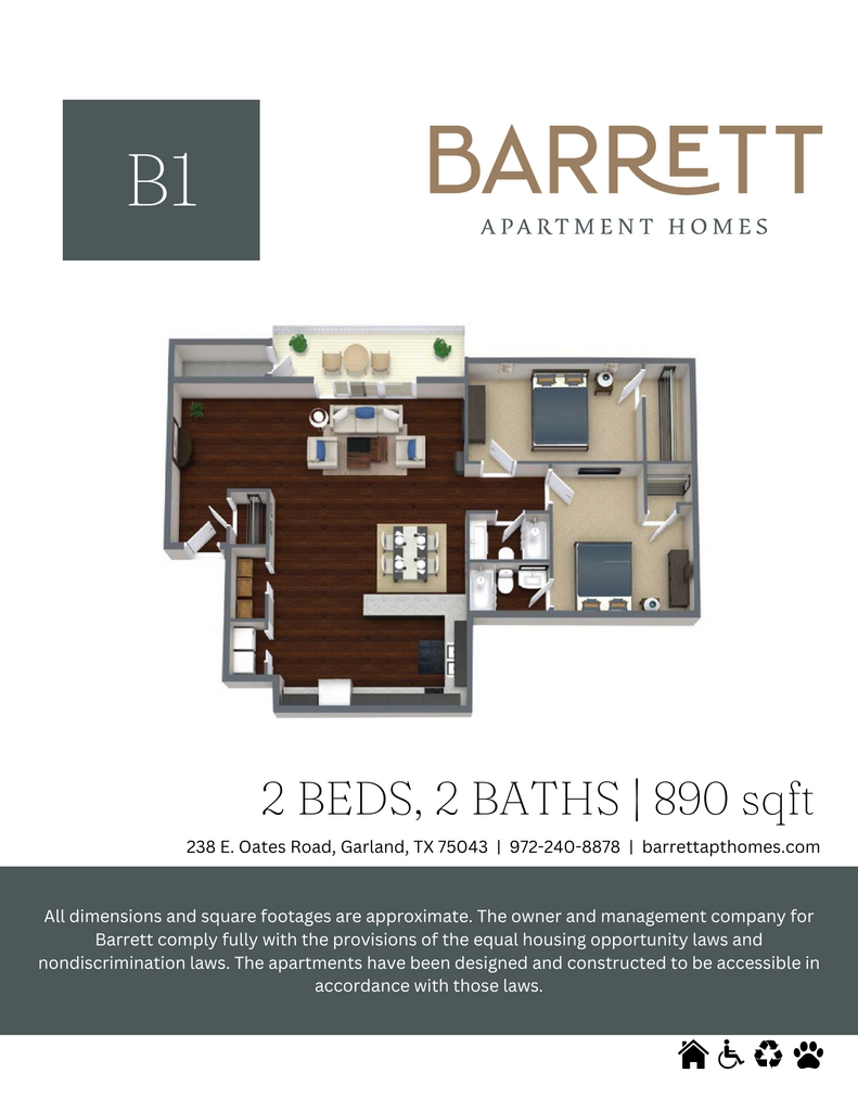 The upgraded home you've been searching for in Garland, Texas, is waiting for you at Barrett Apartment Homes. This pet-friendly paradise features one, two, and three bedroom layouts equipped with exceptional in-home features that complement your daily routine. Journey beyond your front door and indulge in the wide range of resort-worthy amenities our friendly community has to offer. And thanks to our prime location near Town East Mall and Walmart Neighborhood Market, the area's best options for recreation, dining, employment, and retail are well within reach. Luxe interiors. A thriving community. At the epicenter of everything there is to see and do in Garland. This is life at Barrett Apartment Homes.