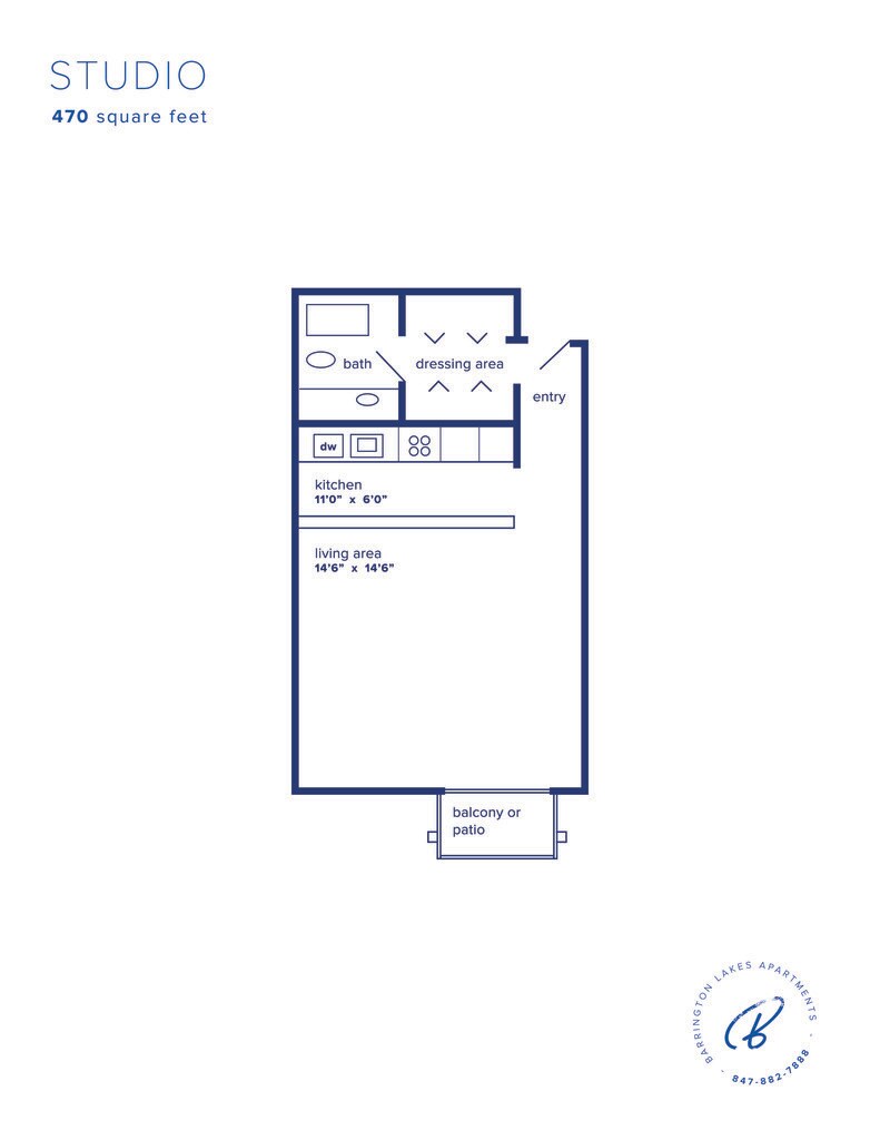 Studio, 1 Bath, 470 sq ftAvailable NowModel Gallery