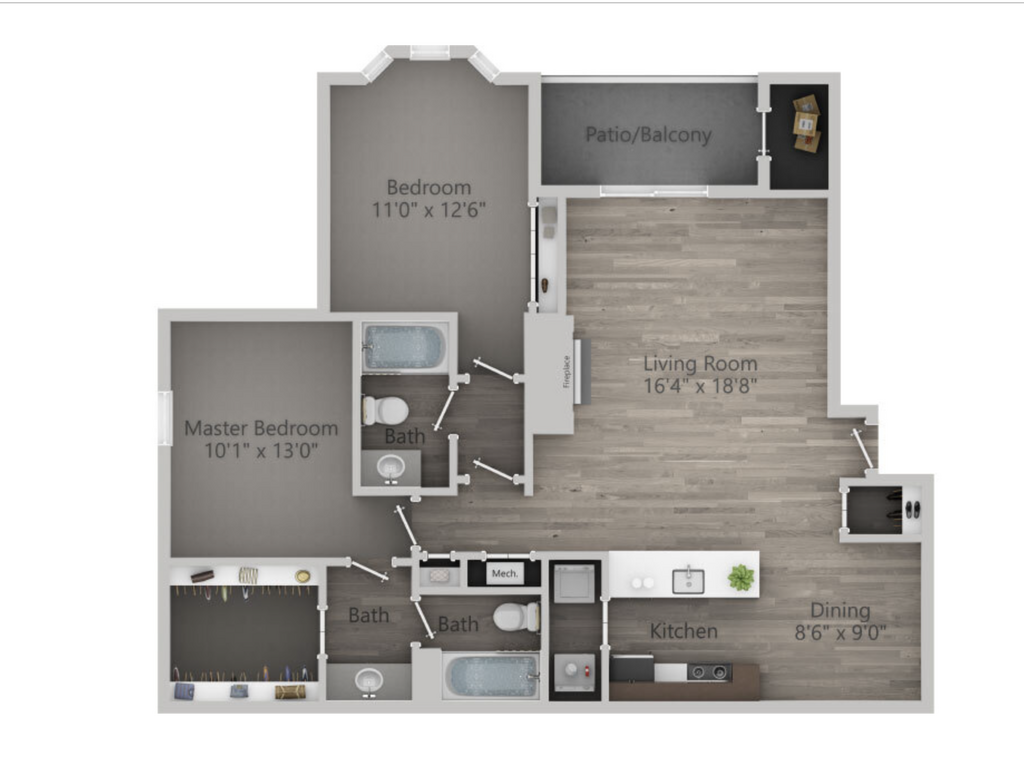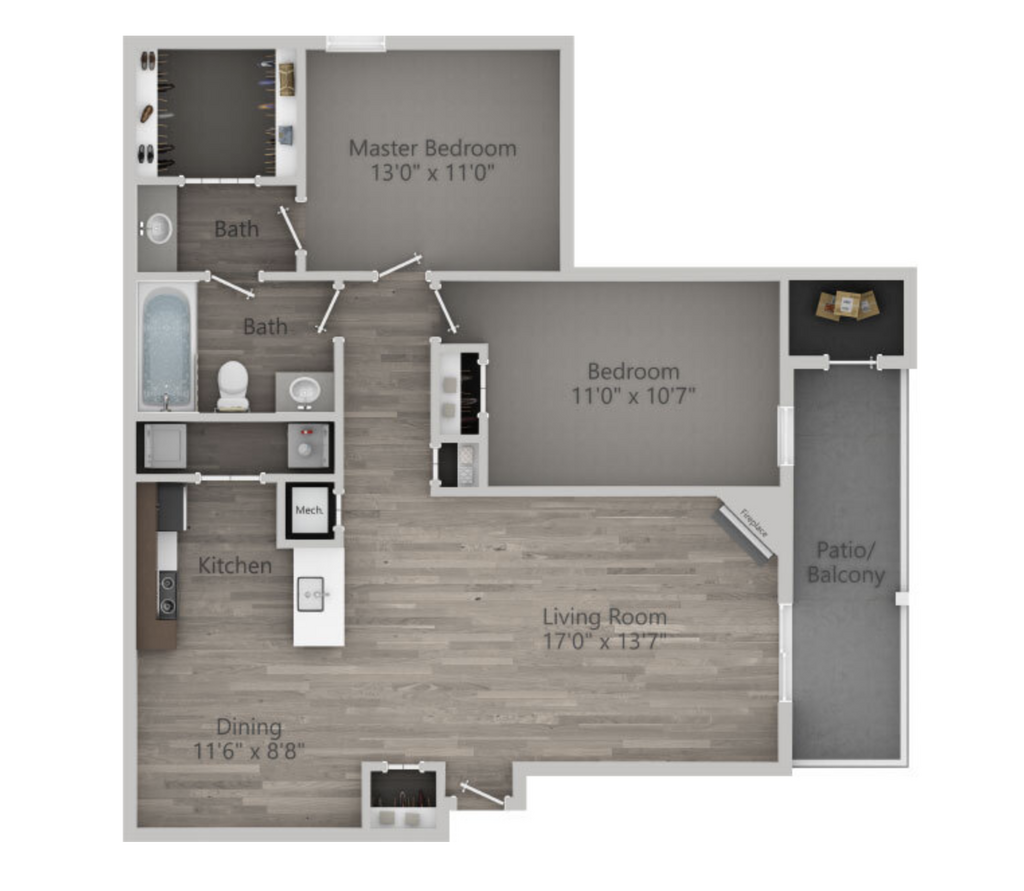2 Beds, 2 Baths, 1044 sq ftAvailable NowModel Gallery